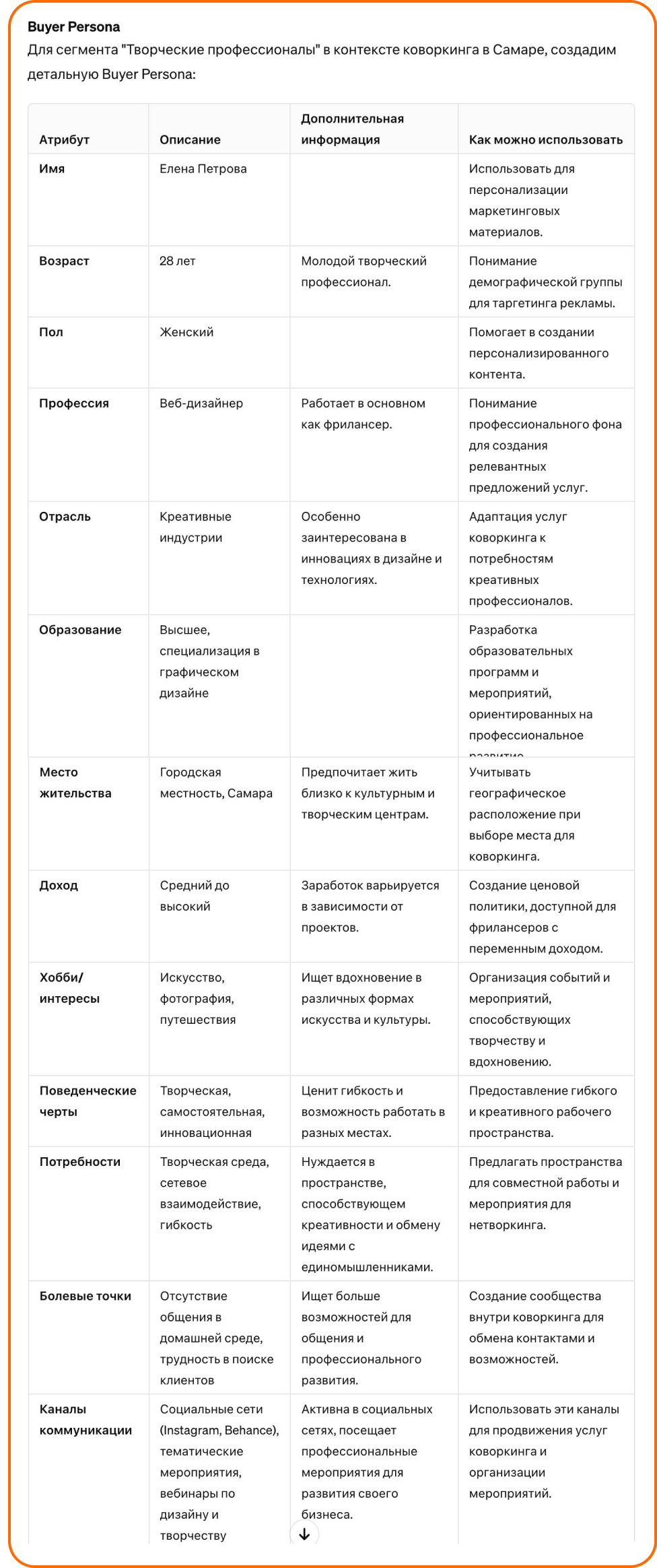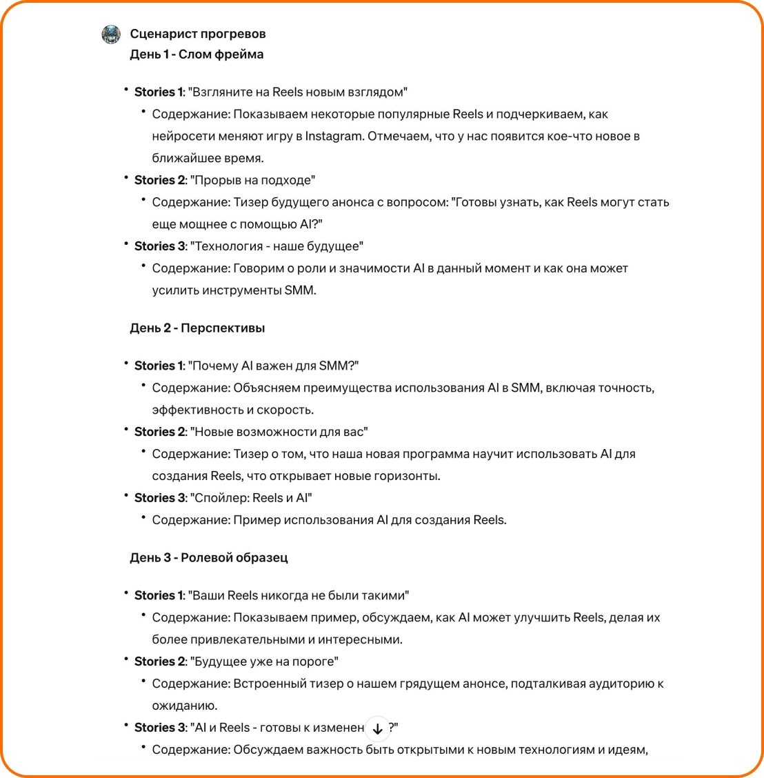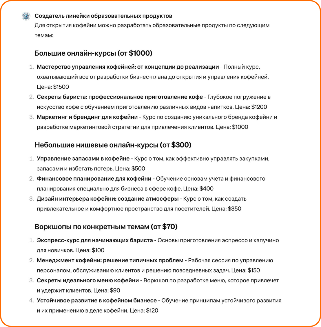 Ирина разработала агента для тех, кто хочет улучшить свои SMM-стратегии в сфере онлайн-образования. Он анализирует ваше присутствие в соцсетях, помогает создать маркетинговый план для роста продаж и укрепления вашего бренда. Агент также предлагает стратегии для контента, чтобы привлечь и удержать внимание аудитории. С ним вы сможете эффективнее продавать и расширять свой бизнес в социальных сетях.
